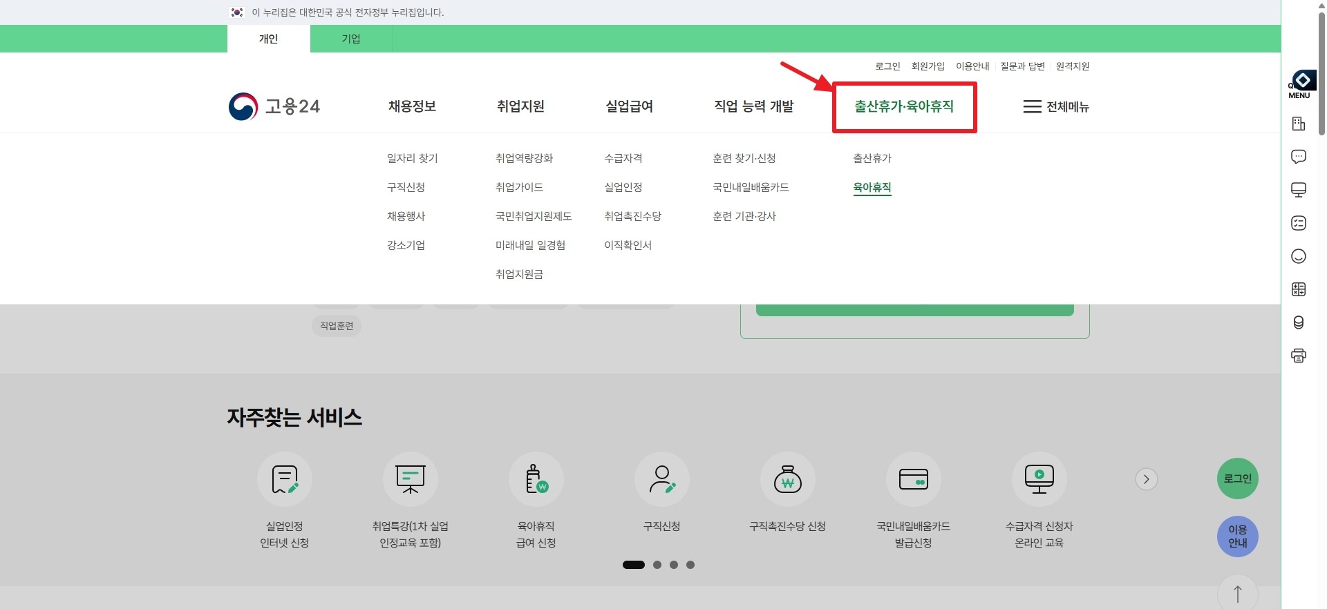 - 육아휴직 시작일 1개월 후부터 종료일 12개월 이내에 신청